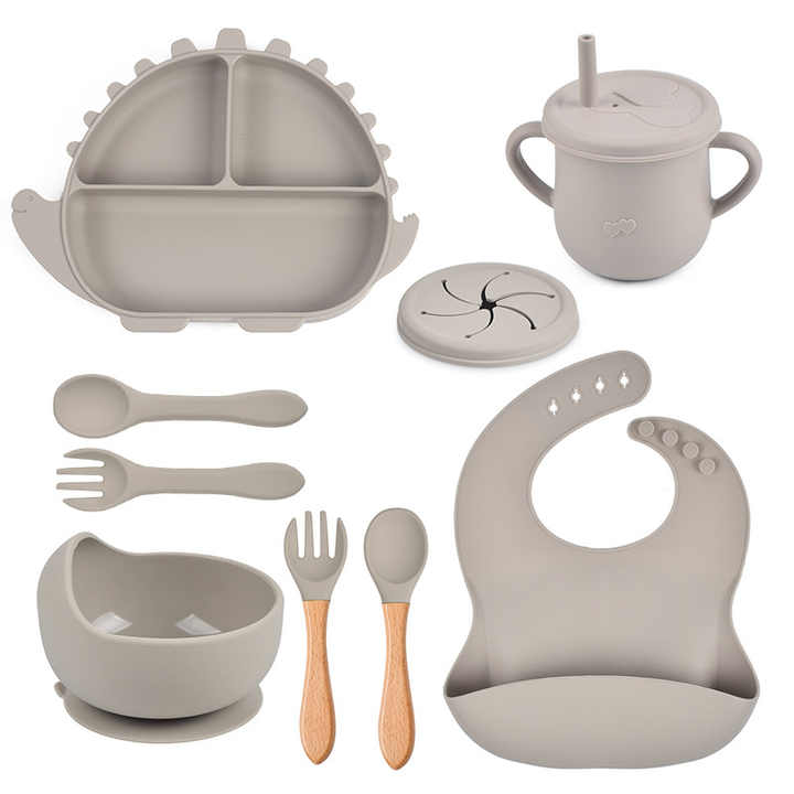 أطفال ديناصور من السيليكون لوازم الرضاعة المستقلة للأطفال الصغار Dinosaur Silicone Baby Feeding Supplies for Toddlers