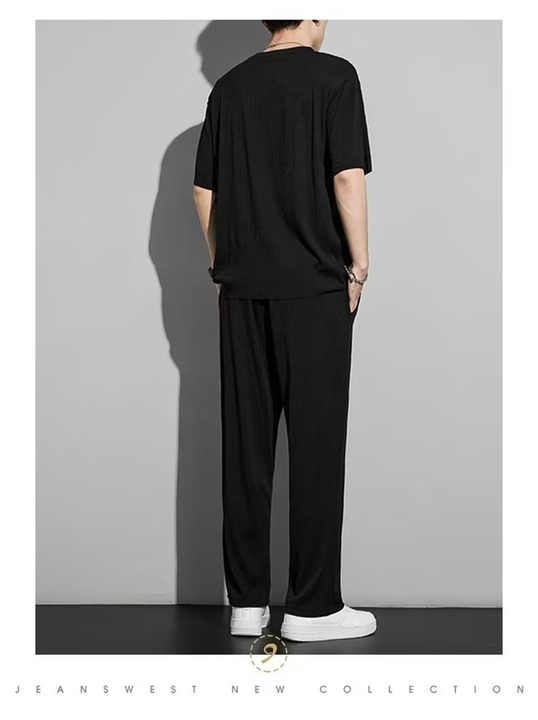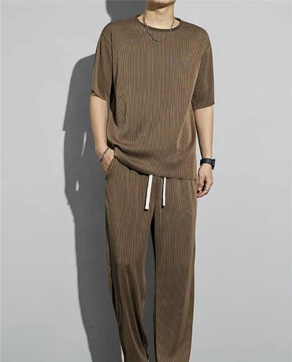 أطقم ملابس رجالية غير رسمية قميص بنصف كم وطقم بنطال برباط