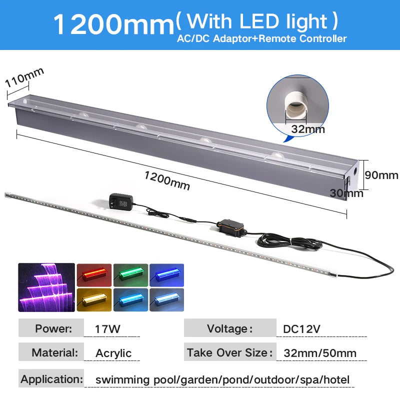 مصنع OEM أكريليك شلال تيار متردد 12 فولت 4 واط RGB نزول الماء حمام سباحة شلال بركة شلال بجودة عالية