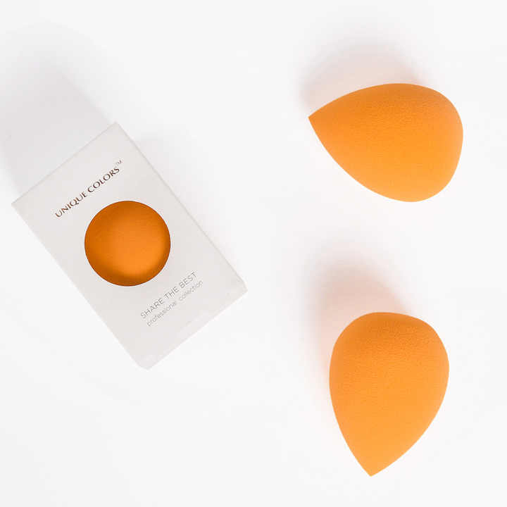 إسفنجة مكياج تجميلية قابلة للغسل وخالية من اللاتكس بتصميم دمعة بشعار مخصص، إسفنجة مكياج تجميلية برتقالية اللون