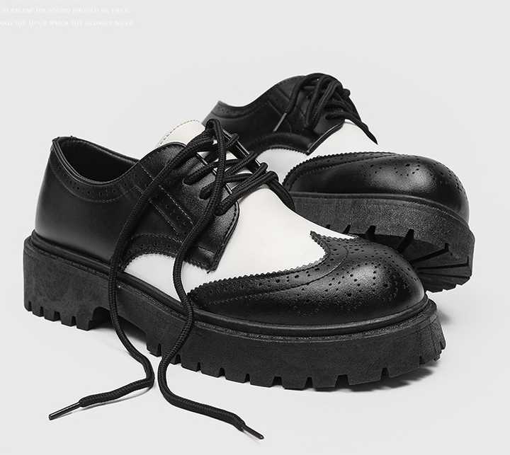 جديد كعب منخفض للرجال نعل سميك أسود منحوت كتلة تنفس عارضة مكتب في الهواء الطلق الزفاف اتجاه الأعمال أحذية أكسفورد
