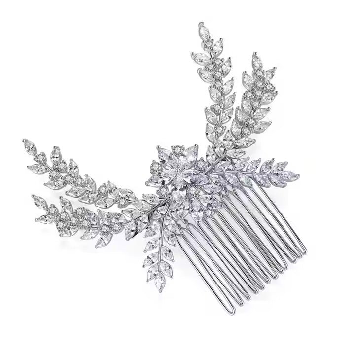 أنيقة زهرة مطلية بالذهب دبوس الشعر مع مكعب الزركون لفتاة التبعي مشط الزفاف