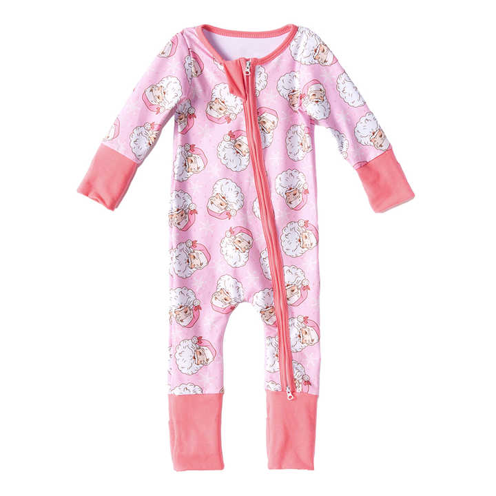 Best Selling Double Zipper Sleepwear Pajamas Christmas Print Toddler Sleepwear Folded Bamboo Romper Cover for Baby