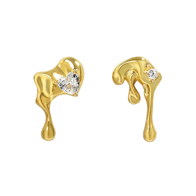 أقراط Wuqie الجديدة بتصميم قطرة ماء لافا غير منتظمة مطلية بالذهب والفضة، أقراط زركون غير متماثلة