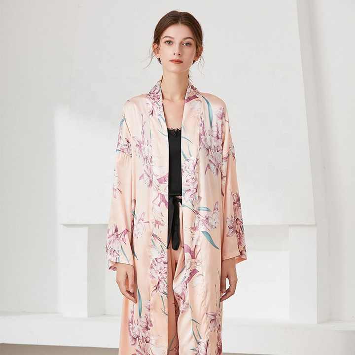 الخريف ملابس للنوم سيدة 3 قطعة نوم الحرير منامة رداء مجموعة الأزهار بيجامة الحرير ليلة دعوى للنساءAutumn Sleepwear Women 3 Pieces Silk Sleepwear Pajamas Robe Set Floral Silk Pajamas Night Suit for Women