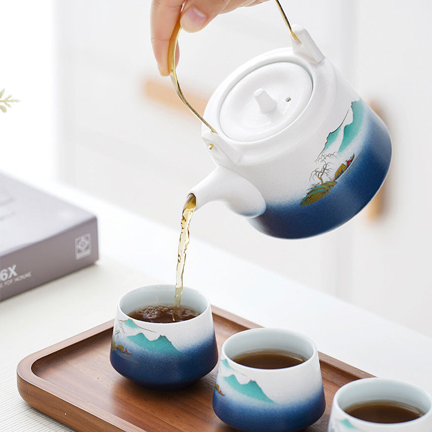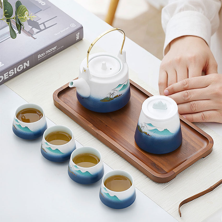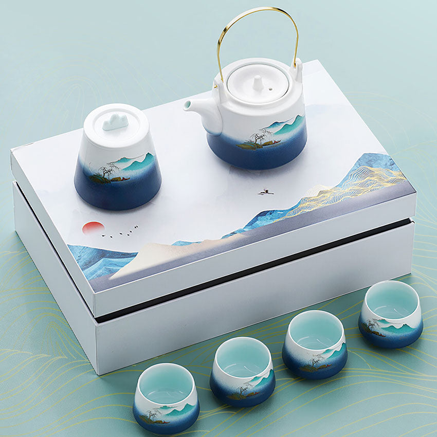 ياباني وصيني ، صيني جونجفو مع إبريق الشاي ، صندوق آسيوي جميل للكبار
