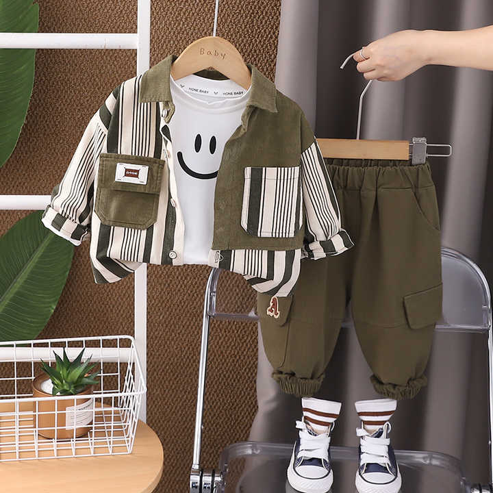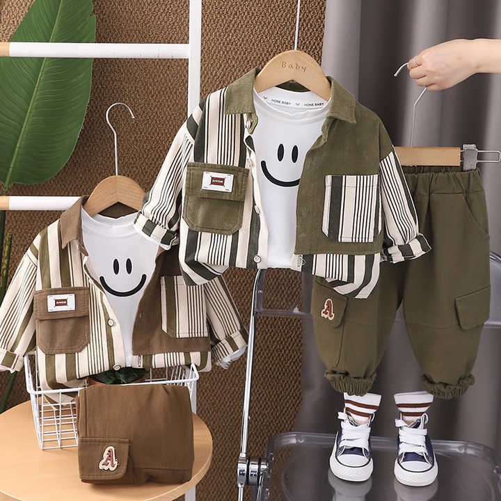 ربيع جديد الخريف بدلة قطنية للأطفال عالية الجودة مجموعة قميص غير رسمي للأطفال وسيم الأولاد ملابس مقطعة مجموعات من 3 قطع