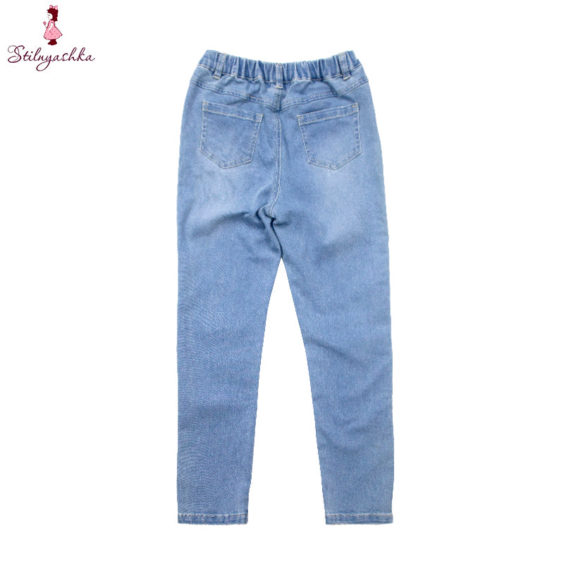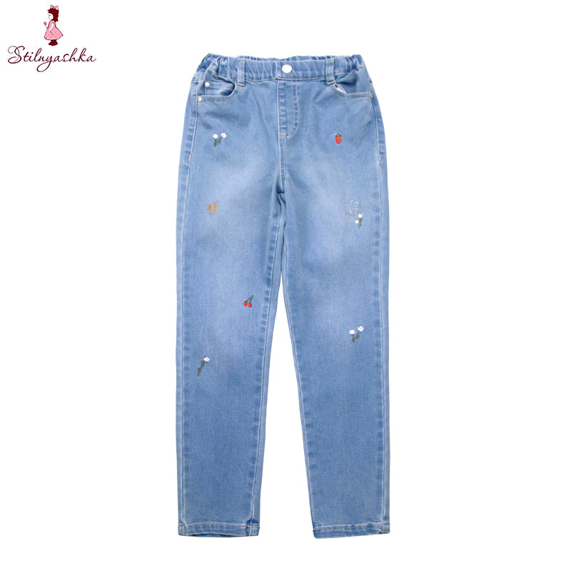 بنطلون جينز أزرق مطرز مغسول للأطفال