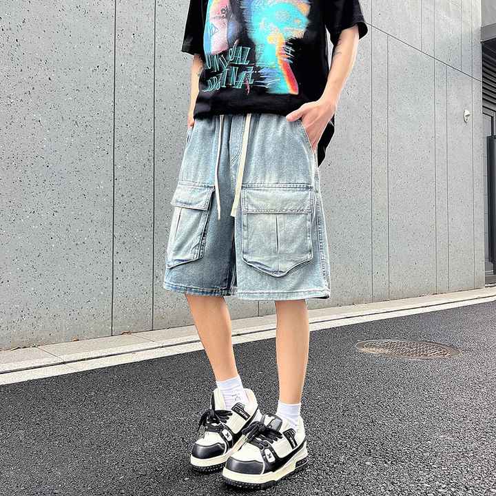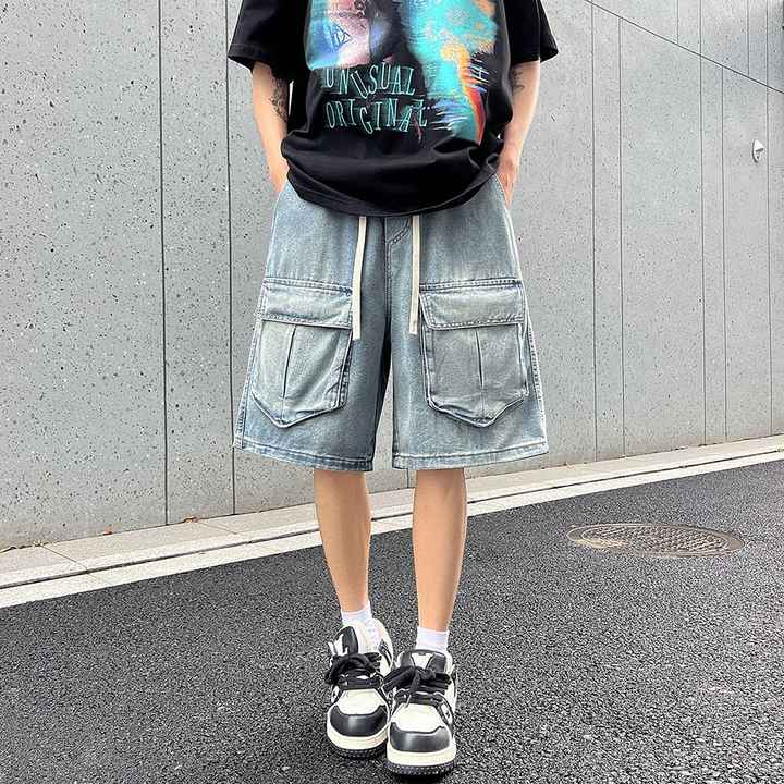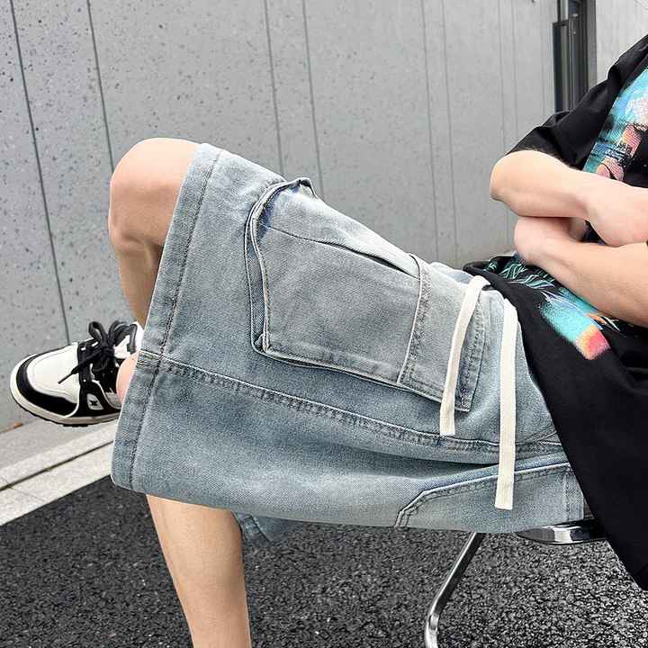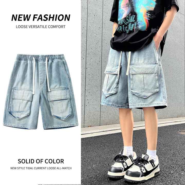 بنطلون جينز رجالي عصري فضفاض مستقيم الساق بتصميم بورت عالي الجودة متعدد الألوان قابل للغسل
