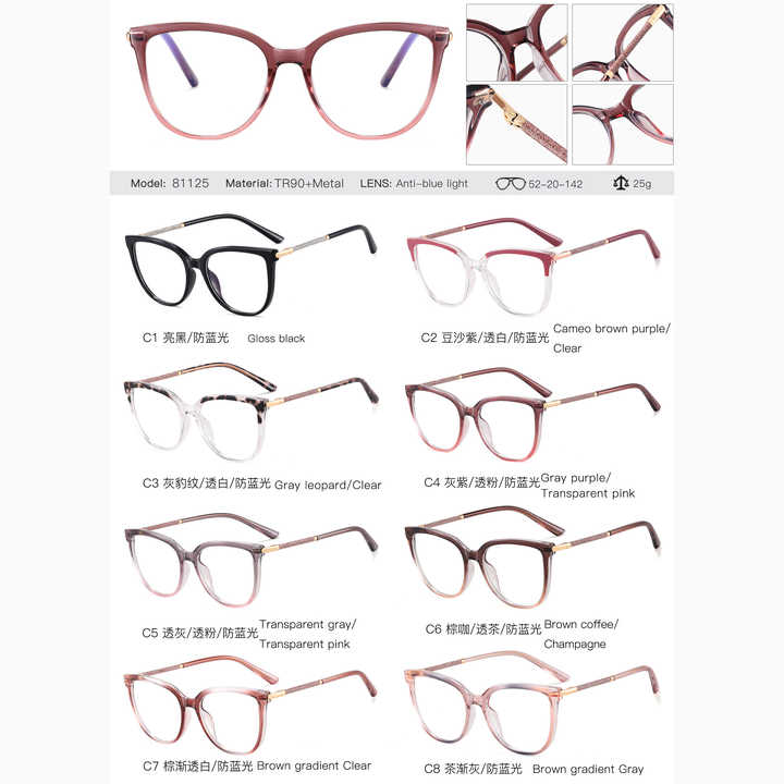 جديد إطار للنظارات للنساء موديل رقم MS 81125 2024، مصنوع من المعدن اللامع بصريًا TR90 + حامي للضوء الأزرق، بتصميم ملون قابل للتخصيص