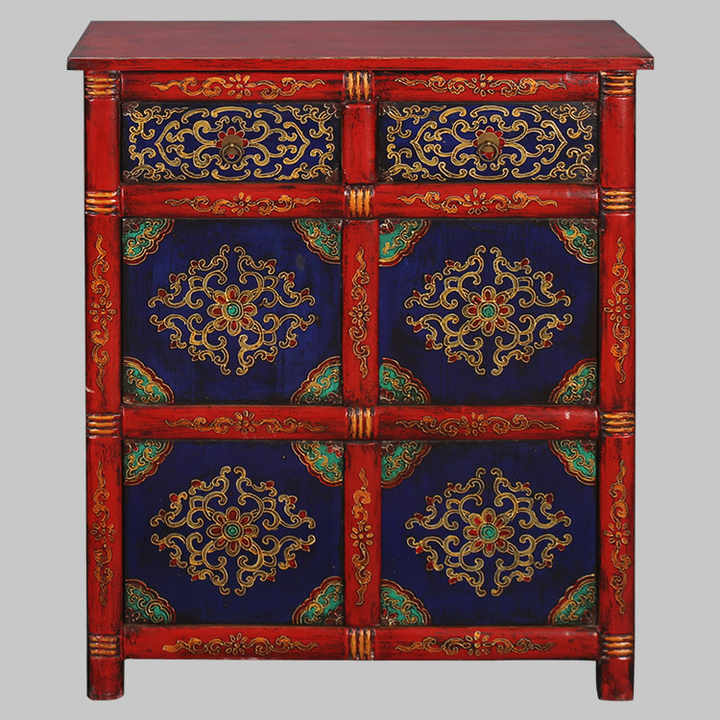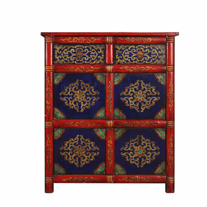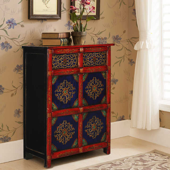 خزانة جانبية للأحذية من الطراز التبتي، منقوشة ومطلية على الشرفة الصينية العتيقة