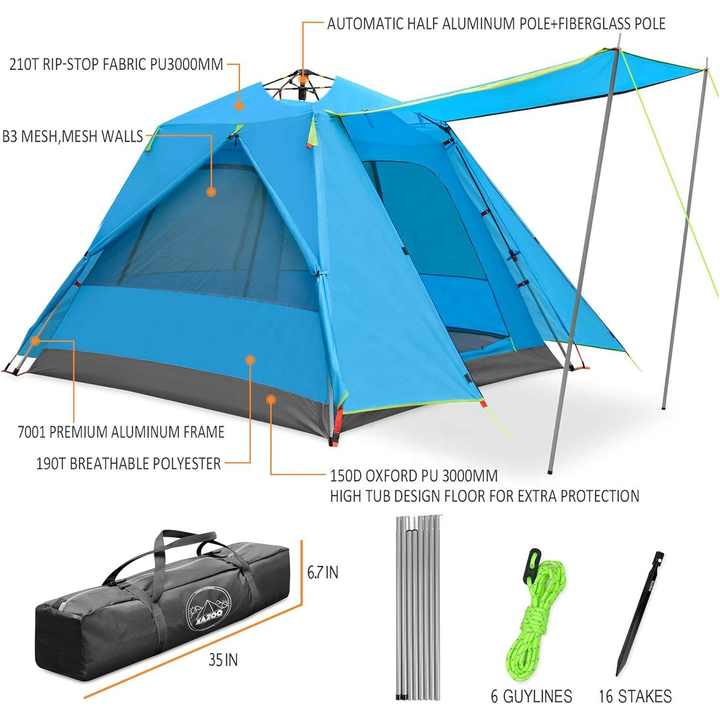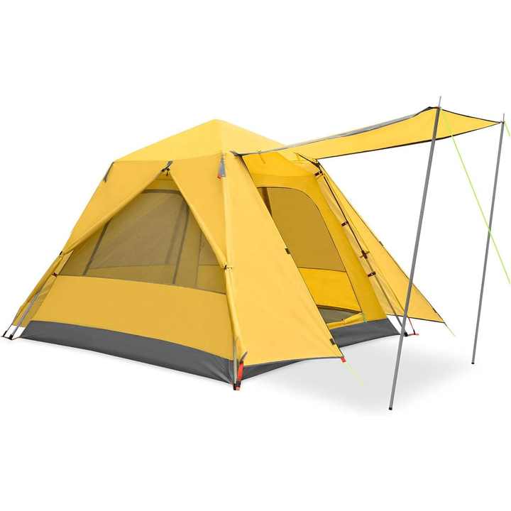 خيمة تخييم عائلية كبيرة مقاومة للماء، خيمة منبثقة، خيمة كابينة لثلاثة أشخاص، تركيب فوري مع مظلة شمسية أوتوماتيكية، عمود من الألومنيوم