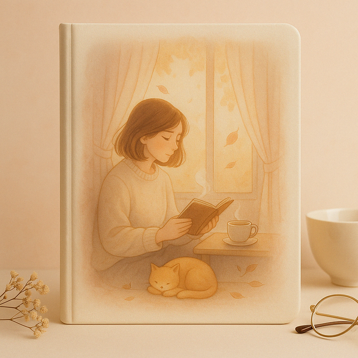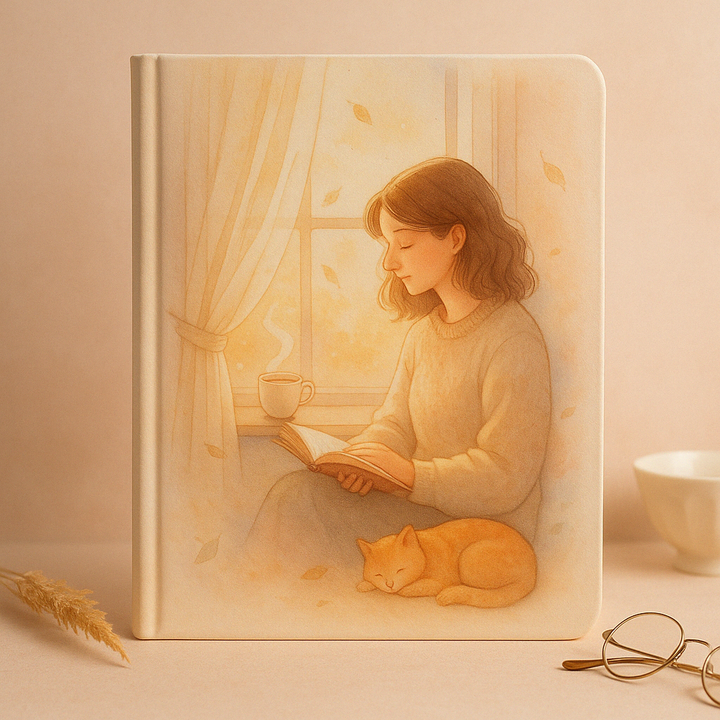 دفتر ملاحظات دافيء ودافئ مع قراءة فتاة