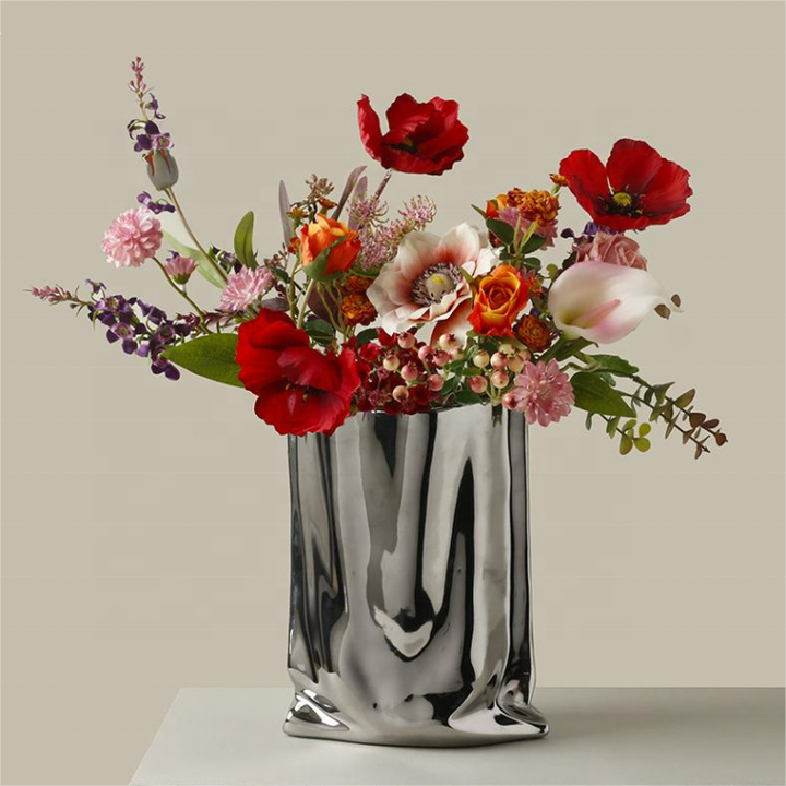 ديكورات منزلية عصرية مطلية بالذهب والفضة، مزهرية خزفية من البورسلين