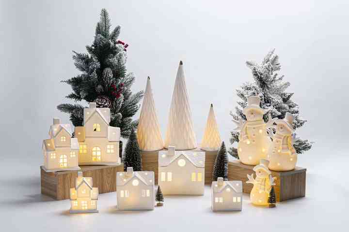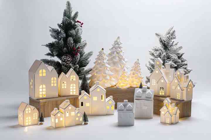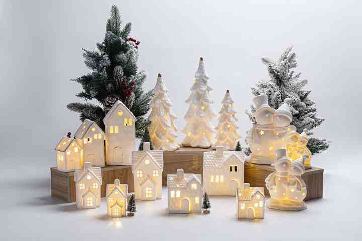 ديكور المنزل الحديث أدى ضوء الليل السيراميك شجرة عيد الميلاد زخرفة ومنزل قرية تصميم بسيط الهدايا التوابل