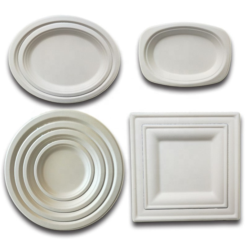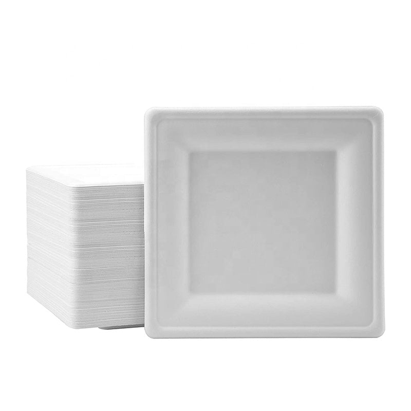 حار بيع منخفض الكربون قصب السكر المتاح الأخضر بوفيه المواد الخام مربع أطباق ورقية ديكور مجموعة