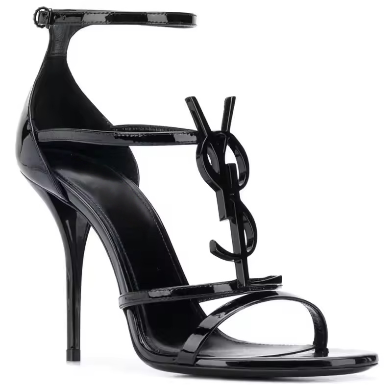 كعب نسائية صيفية جديدة مفتوحة الأصابع ذات كعب عالٍ باللون الأسود موديل 2025 ذات كعب رفيع على الطراز الفرنسي مع مشبك حروف وميزة زيادة الارتفاع