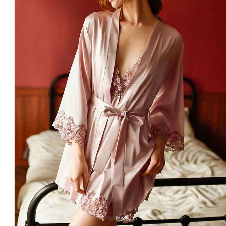 Women's Sexy Luxury Sleepwear Ladies Home 2 Pcs Pajamas Set Nightdress Robe Set