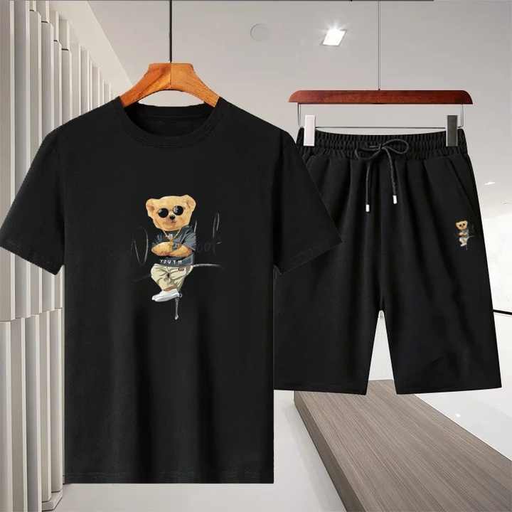 طقم تي شيرت وشورت رجالي من القطن بنسبة 100% للبيع بالجملة، طقم رسمي مغسول كبير الحجم، قطعتين، تي شيرت رجالي سادة