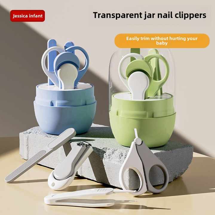 طقم مقص أظافر للعناية بالأطفال مكون من 4 قطع مضاد للقرص للأطفال الصغار وتقليم الأظافر Children's nail scissors kit consisting of 4 anti -tablets for young children and trimming nails