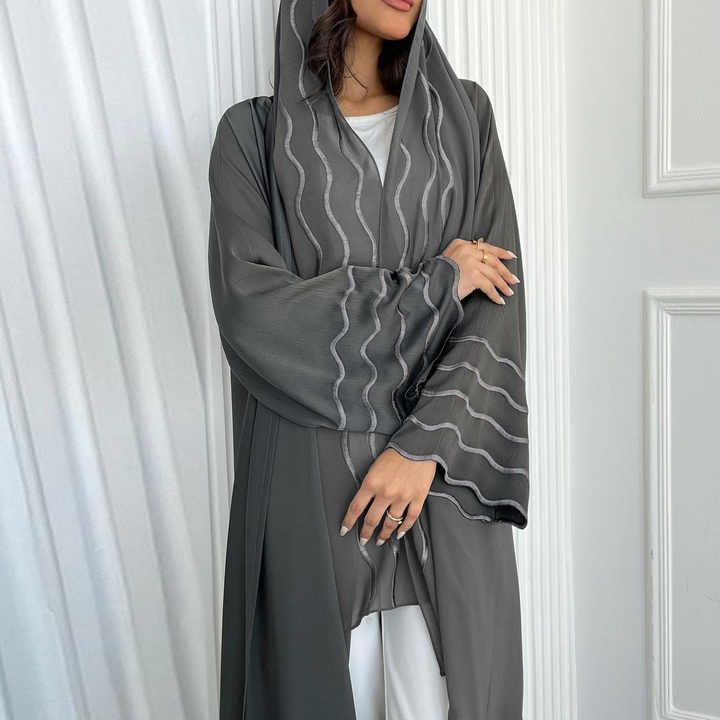 مجموعة من قطعتين من عباءة إسلامية جديدة بشحن مباشر، عباءة إسلامية مطرزة باللون الأسود