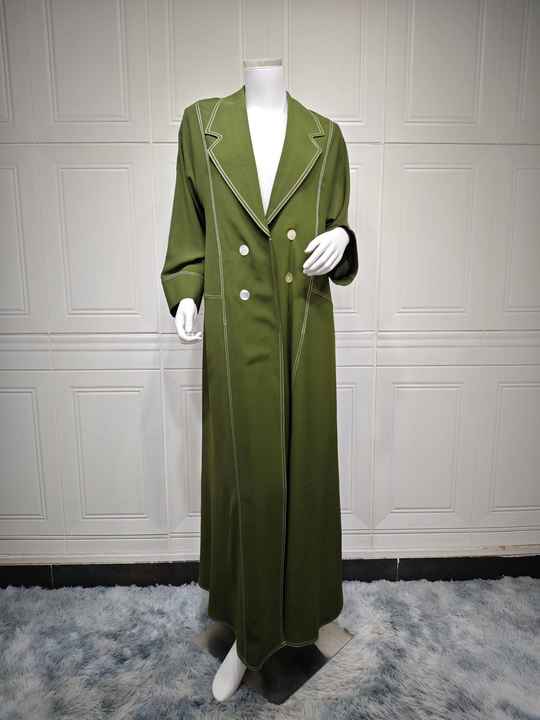 عباية عيد دبي 2024 ملابس إسلامية محتشمة، معطف أخضر إسلامي، جاكيت، عباية عصرية طويلة بأزرار مزدوجة الصدر