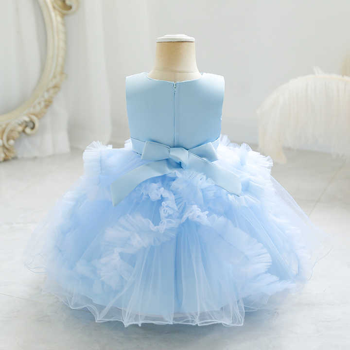 فستان الأميرة الزهرية للبنات من عمر 0 إلى 12 شهرًا، ملابس بتلات فيونكة لطيفة، فساتين أطفال مطرزة، ملابس أطفال حديثي الولادة
