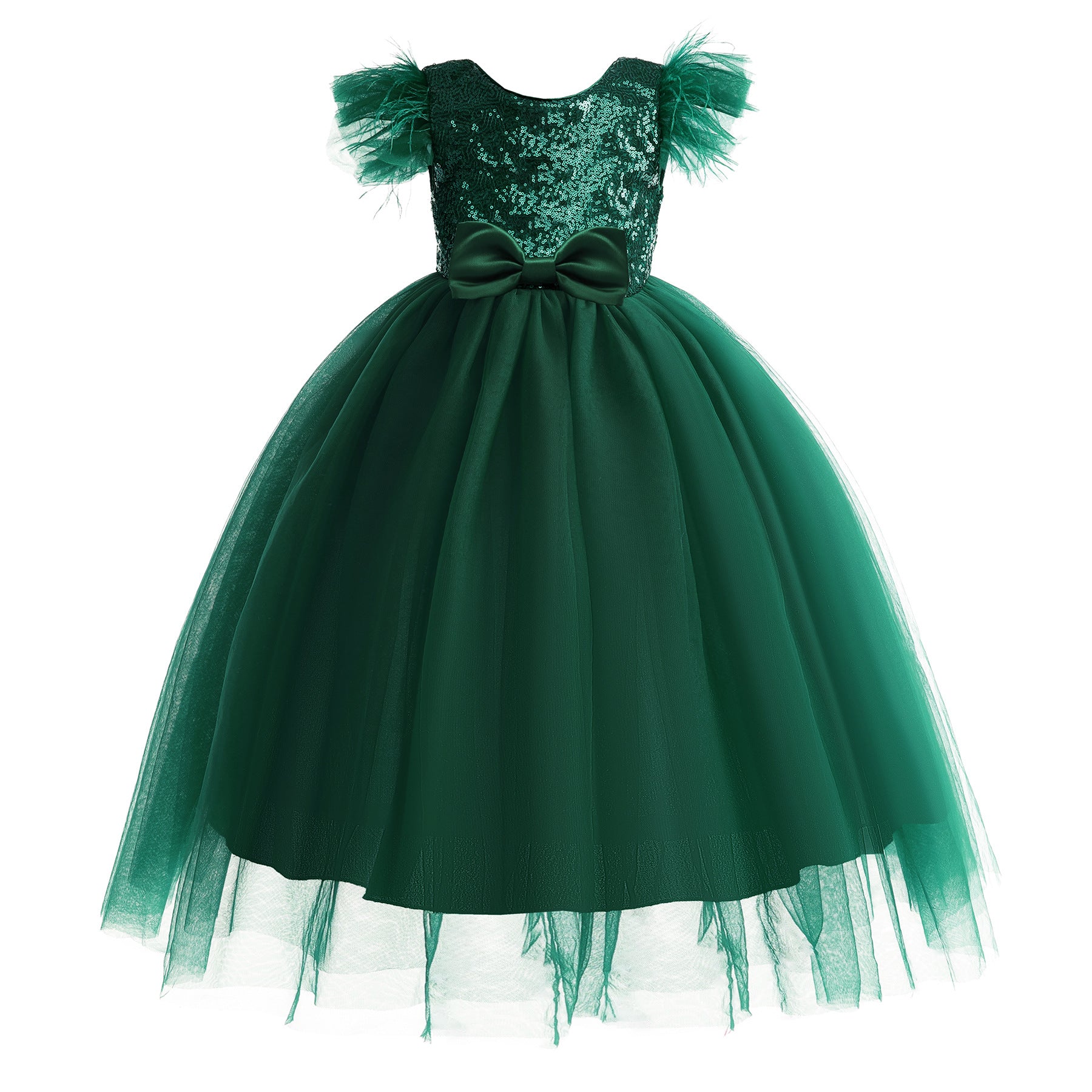 فستان بأكمام من الريش وتنورة أطفال مطرزة بالترتر وتنورة بيضاء ثلجية ملابس بناتية من الشاش