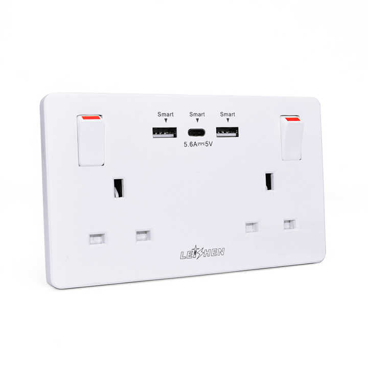 قابس حائط ذكي من leeshen Google Home, قابس حائط مزدوج على شكل عصابة ، Uk 3 ، Usb ، شاحن ، 5 فولت ، 3.1a ، مخرج Usb ذكي ، مقبس حائط