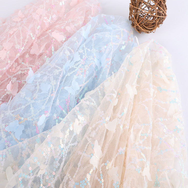 شبكة ليزر ثلاثية الأبعاد عالية الجودة قماش دانتيل مطرز الفراشة من المصنع مباشرة لملابس الأطفال تطريز وتقليم