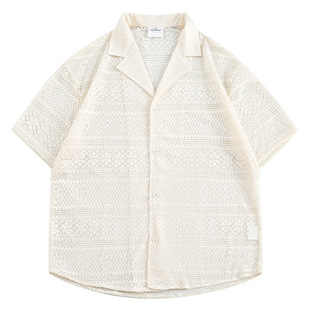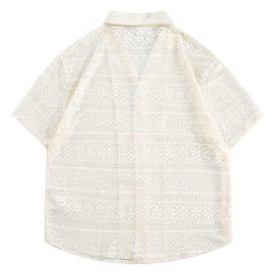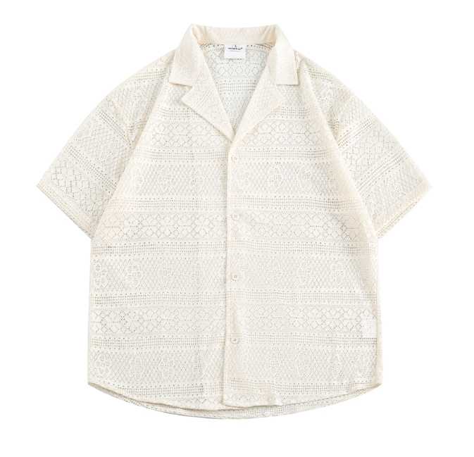 قميص رجالي صيفي بأكمام قصيرة منسوج بأزرار من الدانتيل مخصص للرجال