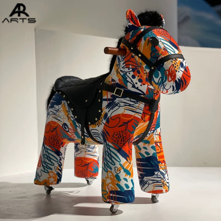 French Style Leather Saddle Stool Creative Wooden Horse Chair Birthday Toy & Home Decoration for Children & Living Room