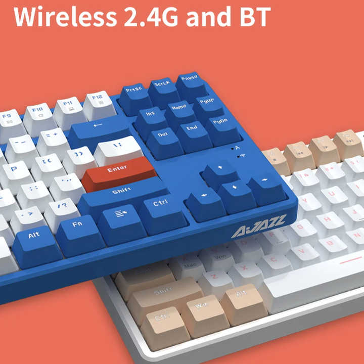 لوحة مفاتيح Ajazz AK871 اللاسلكية القابلة للتبديل السريع، ذات الارتفاع القابل للتعديل، مصنوعة من مادة PBT، لوحة مفاتيح ميكانيكية ثنائية الوضع للألعاب والمكتب