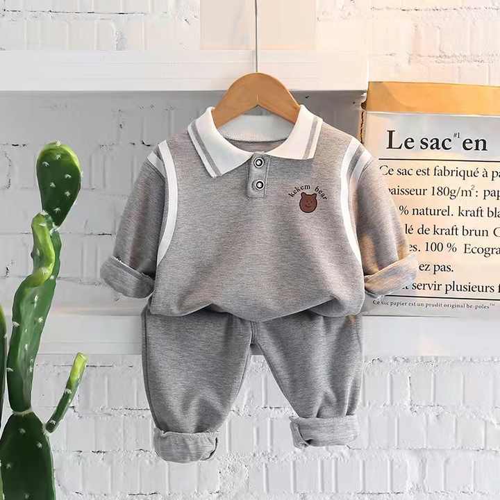 مجموعة أزياء أطفال ، ملابس شتوية ، للأطفال, مجموعة أزياء أطفال ، ملابس للأولاد ، 2 قطعة ، بياقة مثنية للأسفل ، مجموعات ملابس للأولاد الصغار ، مطرزة