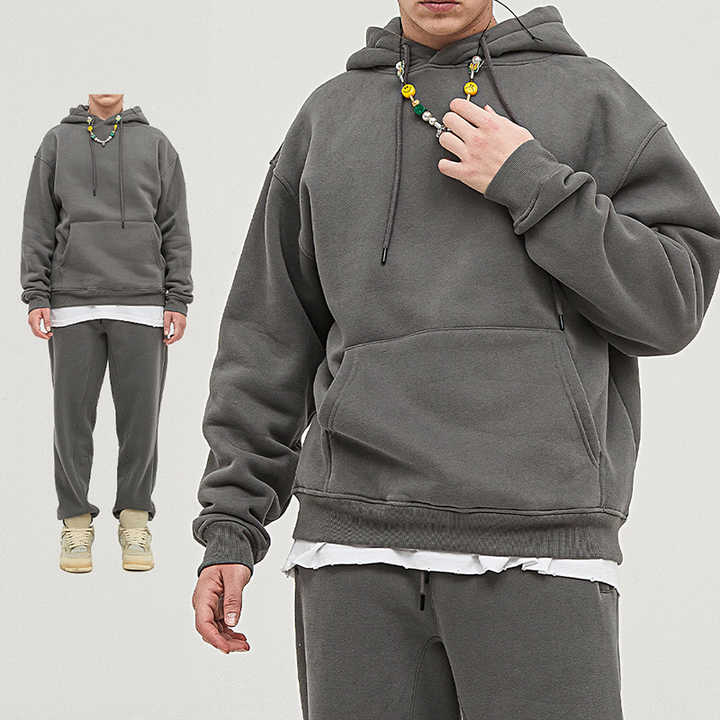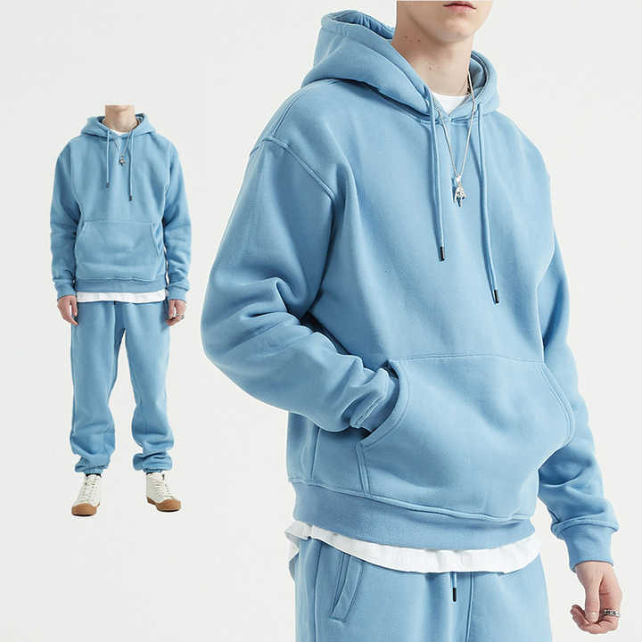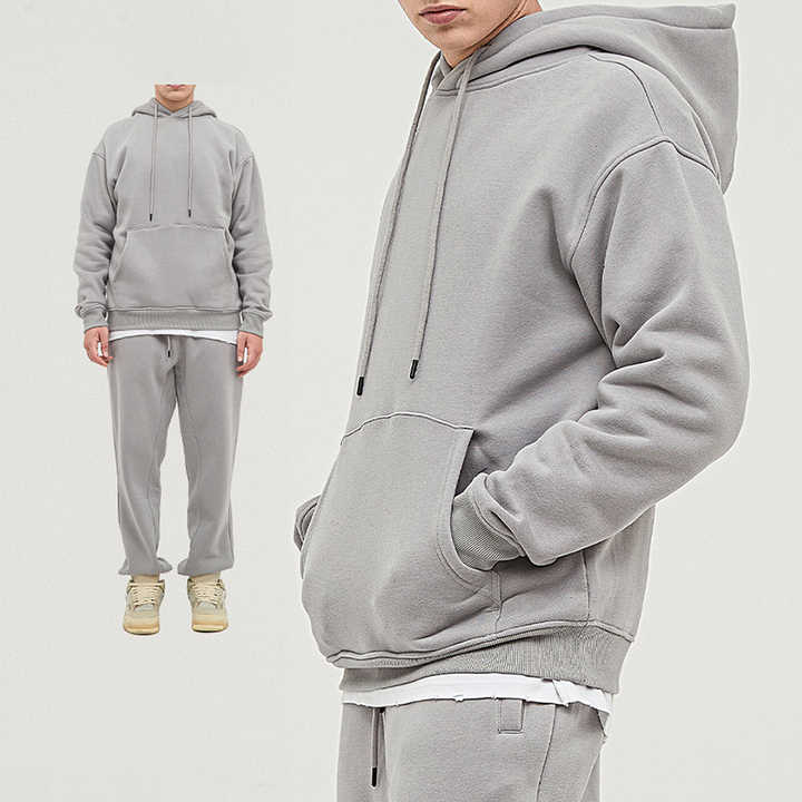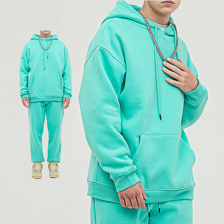 مجموعة ملابس رياضية للرجال مصنوعة من مزيج القطن والبوليستر عالي الجودة، بغطاء رأس بلون واحد