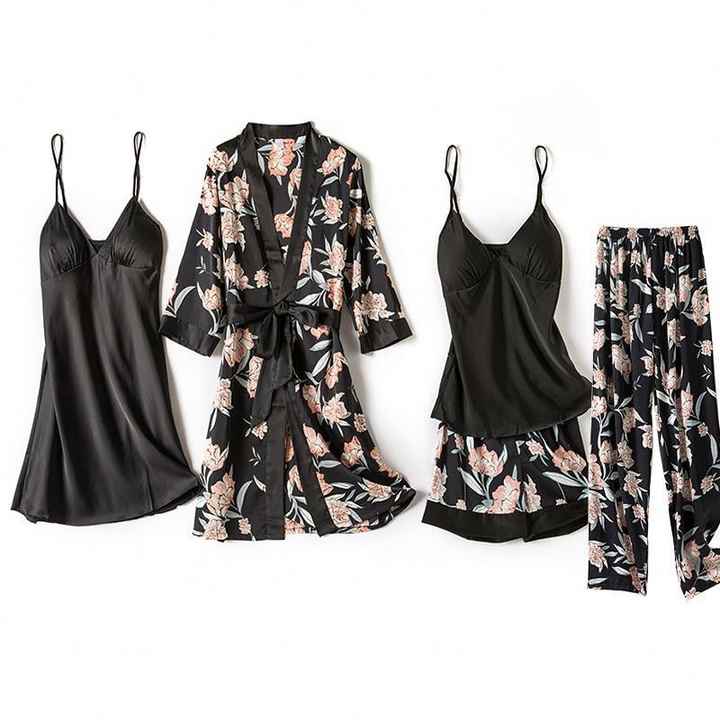 مجموعة نسائية من OEM شتوية مطبوعة بالأزهار خصر مرن أثواب كيمونو بطول الركبة بيجامة ليلية للاستخدام المنزلي