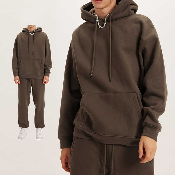 مجموعة هودي وبنطلون شتوي للرجال بمقاسات كبيرة من البوليستر والقطن بلون نقي