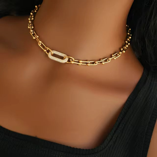 18K Stainless Steel Gold Plated Neck Necklace with Horseshoe-Shaped Buckle Luxury Minute Studd Necklace Women's Jewelry