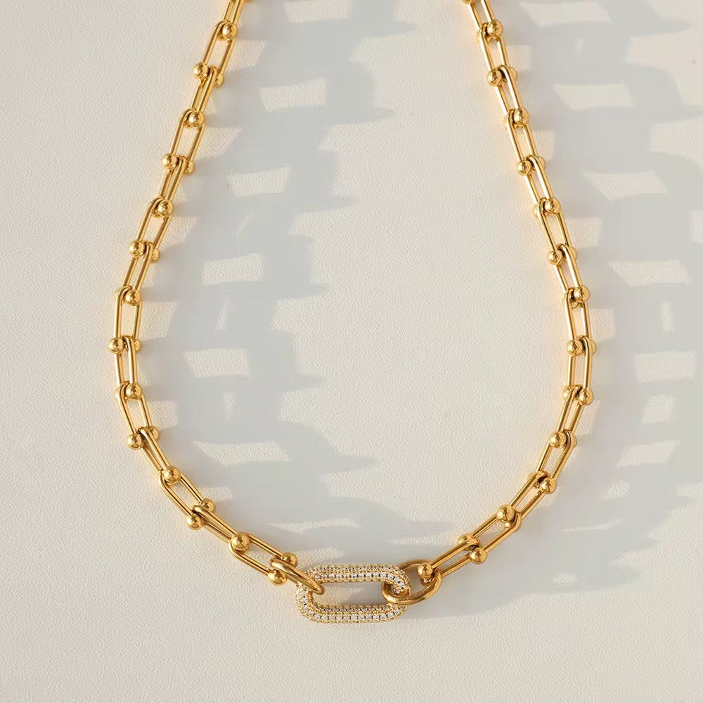 قلادة عنق مطلية بالذهب عيار 18 من الفولاذ المقاوم للصدأ مع مشبك على شكل حدوة حصان قلادة فاخرة مرصعة بالدقيقة مجوهرات نسائيه