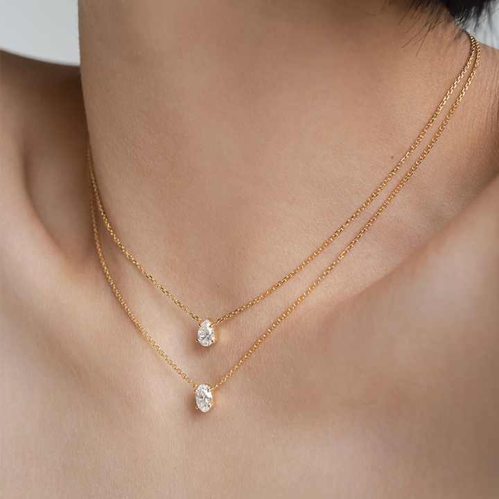 High-end 18K Gold PVD Dainty Waterdrop Oval Zirconia Stainless Steel Crystal Pendant Necklace Fashion Jewelry Stones
