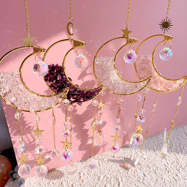 تعليقة كريستال  من الكريستال الطبيعي عالية الجودة مصائد شمس على شكل قمر من الجمشت للديكور