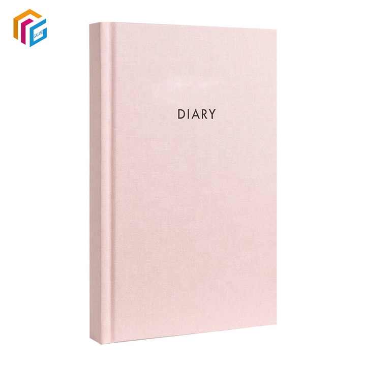 مفكرة قماش مخصصة بشعار من القصدير الذهبي مفكرة بغلاف مقوى ، مخططة مع شريط من نسيج الكتان ، دفتر اليوميات