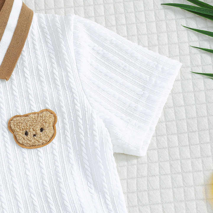 ملابس أطفال بالجملة ملابس أولاد صيفية مطرزة بدب صغير ملابس رياضية خارجية غير رسمية طقم مكون من قطعتين للأولاد الصغار