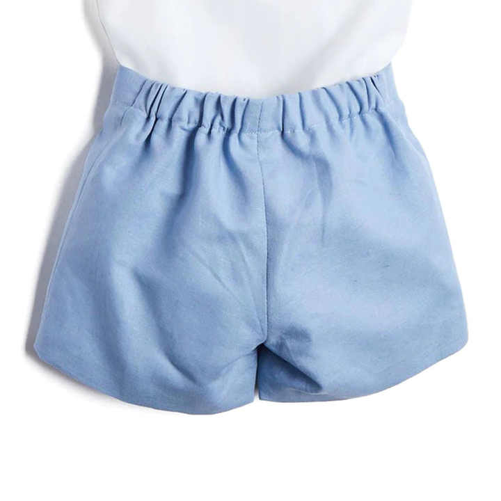 ملابس أطفال للأولاد الصغار صيفية كلاسيكية للأطفال طقم قميص أبيض شورت قطني أزرق ملابس عيد ميلاد