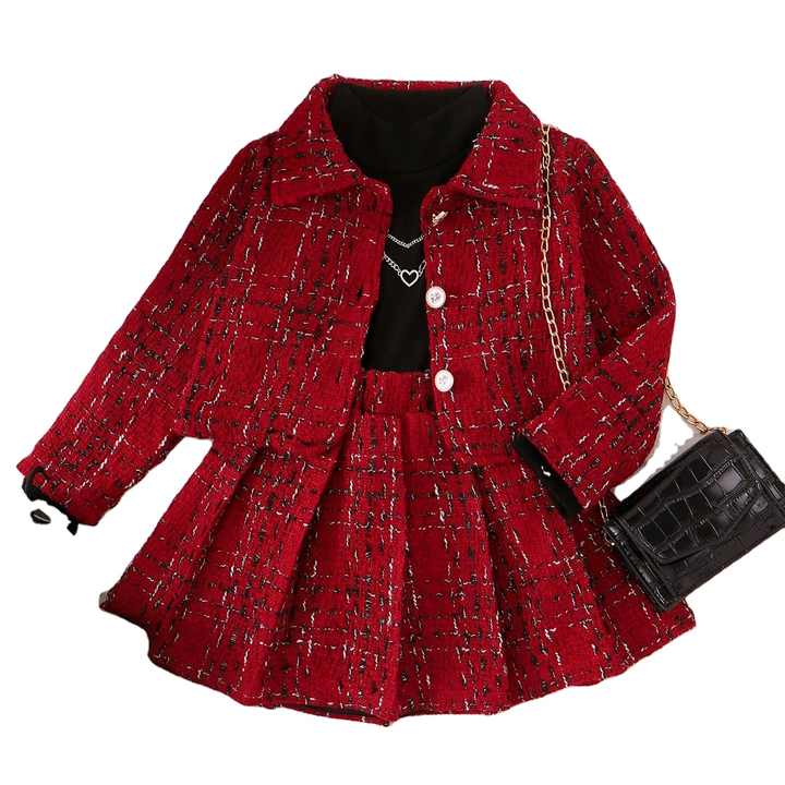 ملابس أطفال للخريف والشتاء مجموعة ملابس أطفال من 4-7 ص برقبة عالية وأكمام طويلة وتنورة مطوي ملابس للبنات