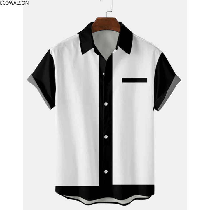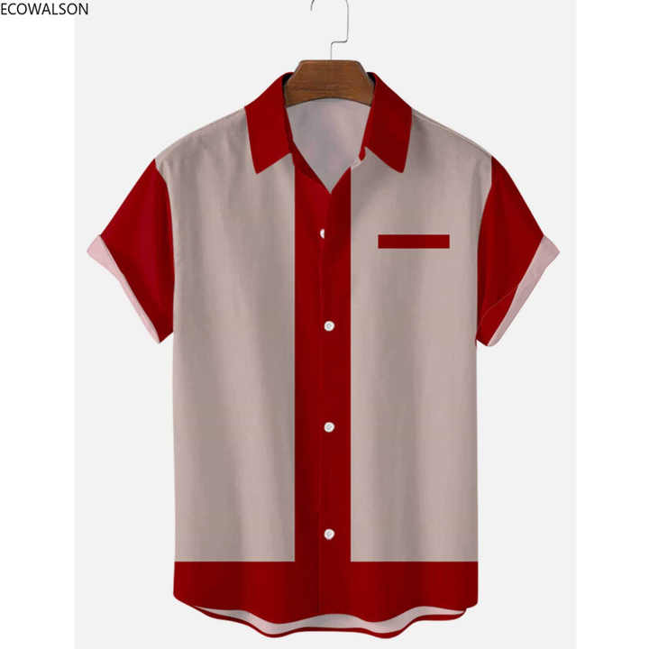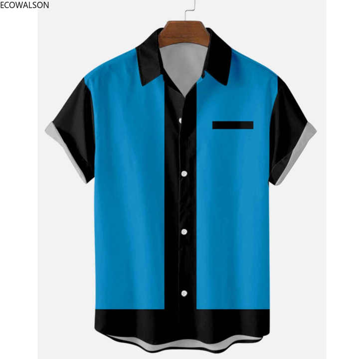 ملابس رجالية قمصان روكابيلي من الخمسينيات، بلوزات ريترو بأكمام قصيرة للرجال، قمصان بولينج كاجوال بأزرار، قميص رجالي
