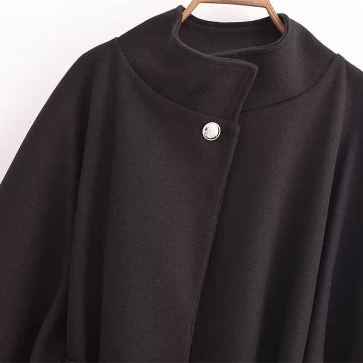 ZATRHMBM ملابس نسائية الموضة الجديدة كم الخفافيش معطف الخصر الرجعية طوق طويل الأكمام حزام الديكور معطف فضفاض