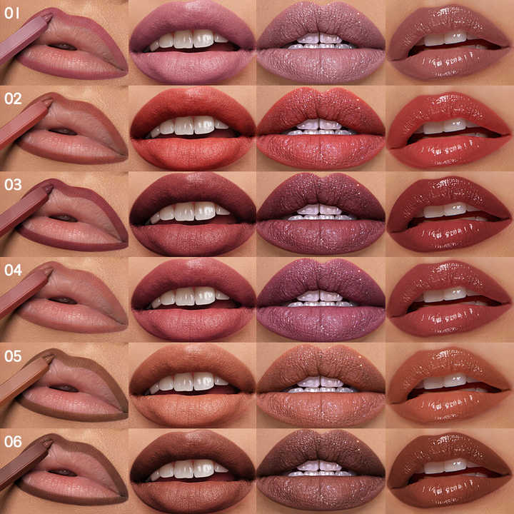 مجموعة مكياج شفاه من 5 قطع بشعار مخصص من OEM، محدد شفاه و3 ملمعات شفاه ذات لمسة غير لامعة/ملمع/لامع، مجموعة ملمع شفاه بعلامة خاصة