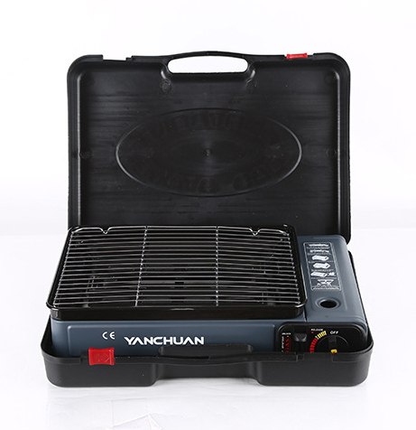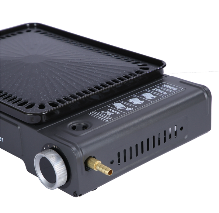 موقد غاز تخييم فاخر محمول من المصنع للاستخدام في الهواء الطلق للشواء مصنوع من الفولاذ ومتوافق مع البوتان والبروبان للاستخدام أثناء السفر