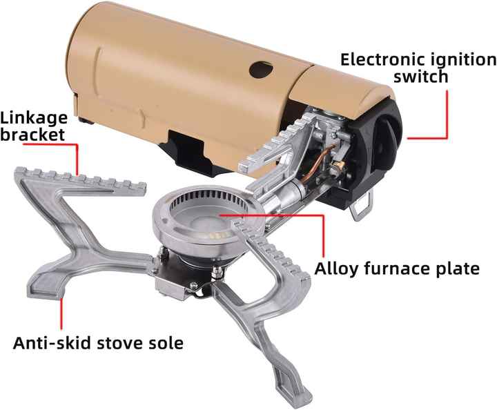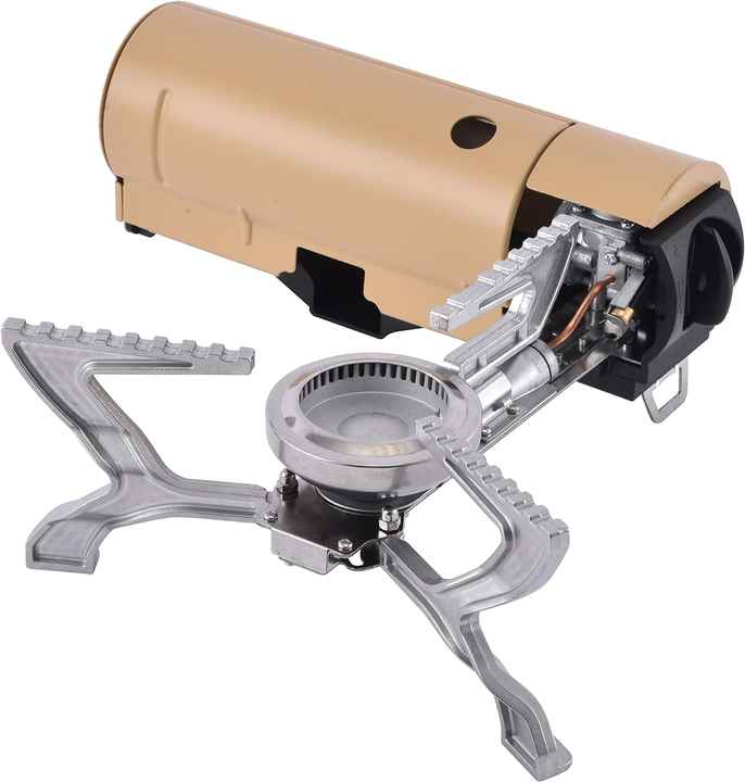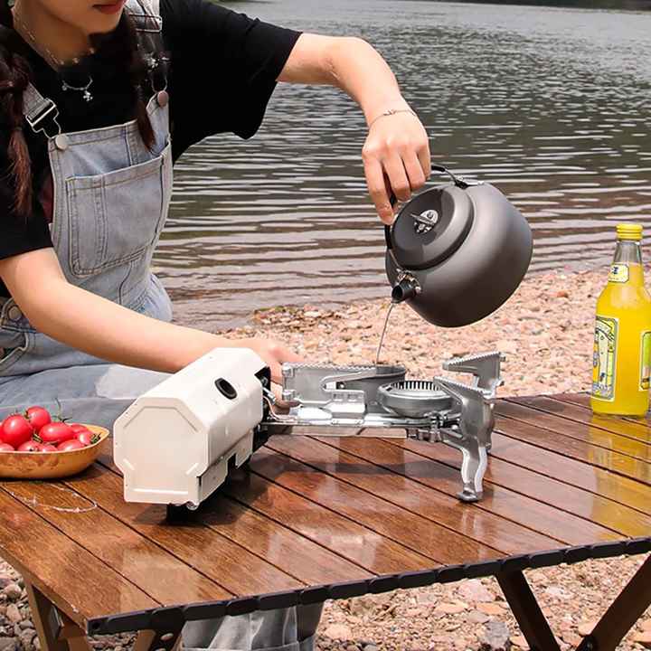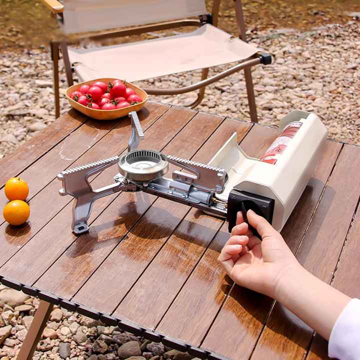 موقد غاز محمول قابل للطي بقوة 2600 واط بطول 27.5 سم للتخييم في الهواء الطلق مزود بقفل مغناطيسي وموقد للسفر
